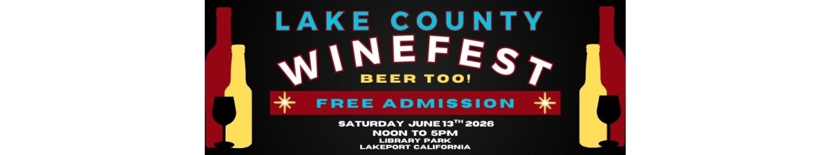 Put on by the LCSA Wine Club WINEFEST is coming to Lakeport’s beautiful Library Park. Home wine and beer makers and local commercial wineries will supply tastes of their creations. “Making Wine for Music” this yearly fundraiser supports the Lake County Symphony Association. Enjoy the popular Wine Barrel Raffle drawing will award two lucky winners 24 bottles of Lake County wines. Stop by and meet Conductor John Parkinson at the Symphony booth for the whole story. Live music will be on hand. Not into wine? Or beer? Admission is free to shop and enjoy the many wonderful arts, crafts booths and food supplied by local vendors. Visit the Silent Auction and bid on a variety of special items--donated by local businesses and other symphony supporters.